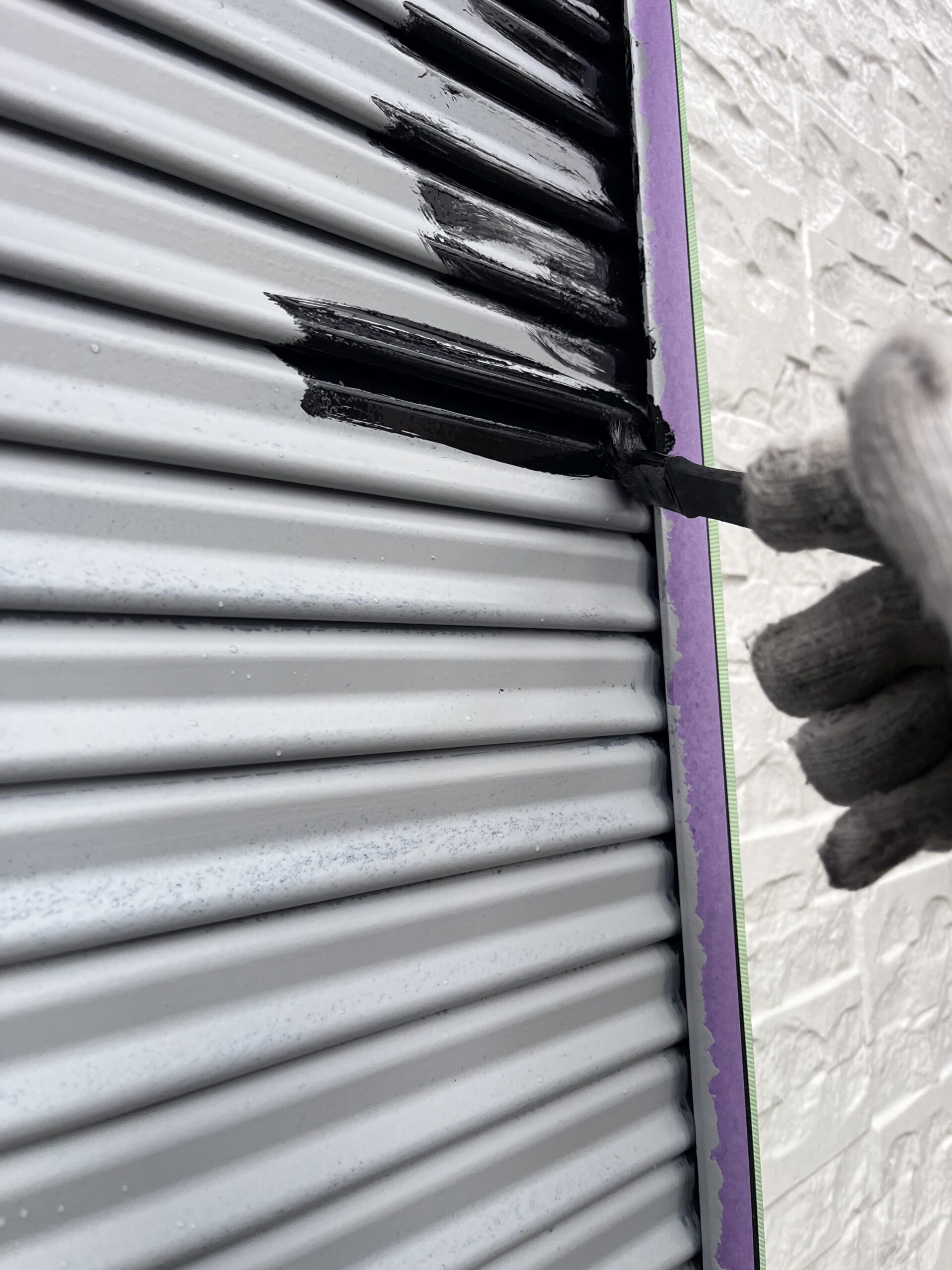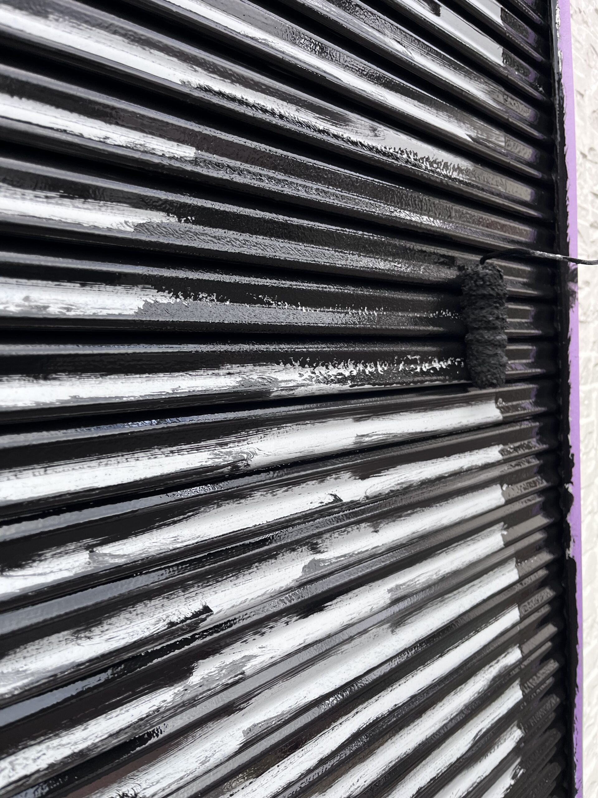 シャッター中塗り上塗り、養生バラシ掃除で完了