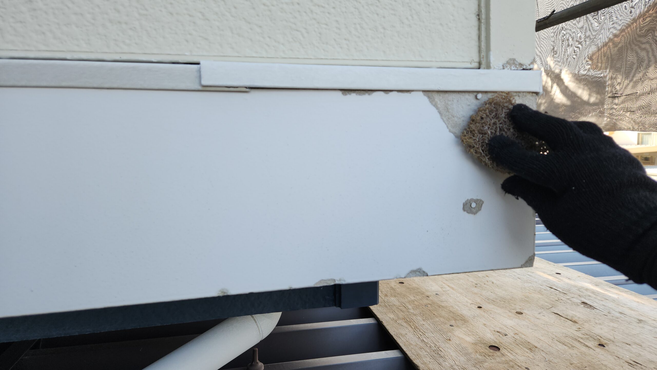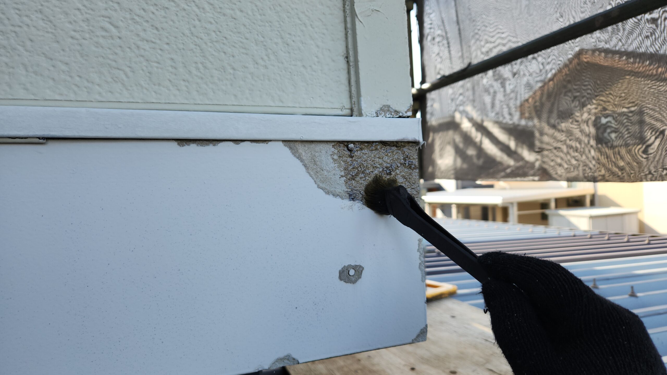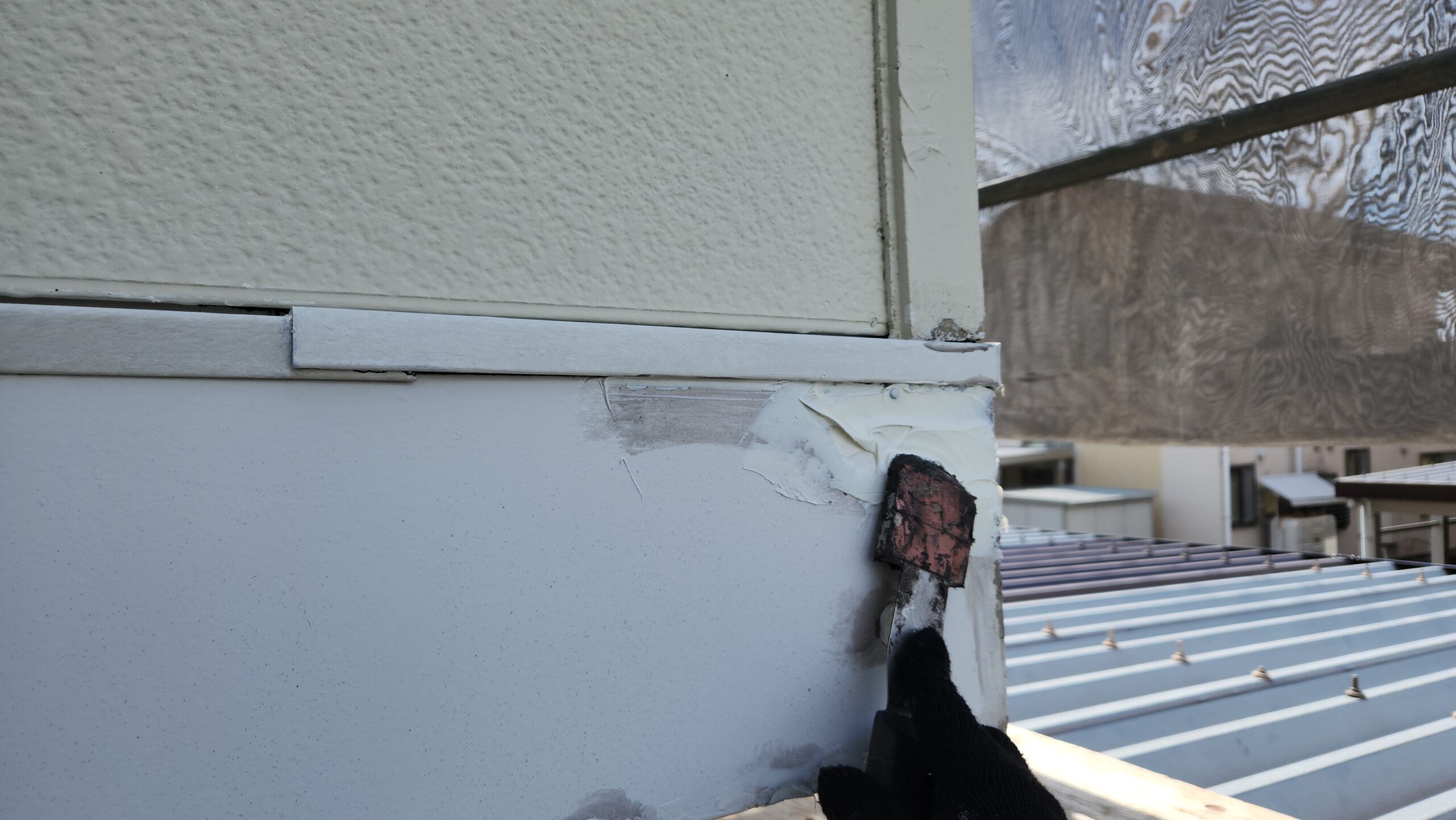 軒天の中、上塗りと軒樋、破風の中塗りと幕板の補修をしました。
