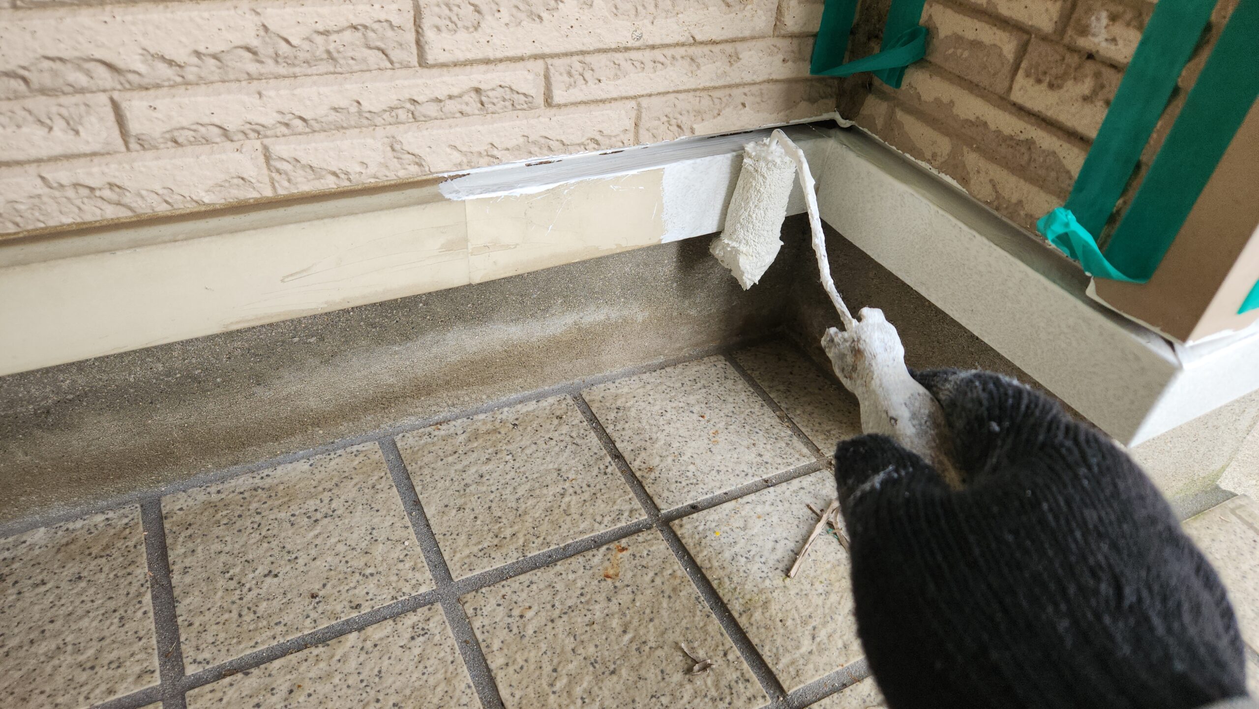 シーリングの打ち換え、水切り、霧余けの中塗りをしました。