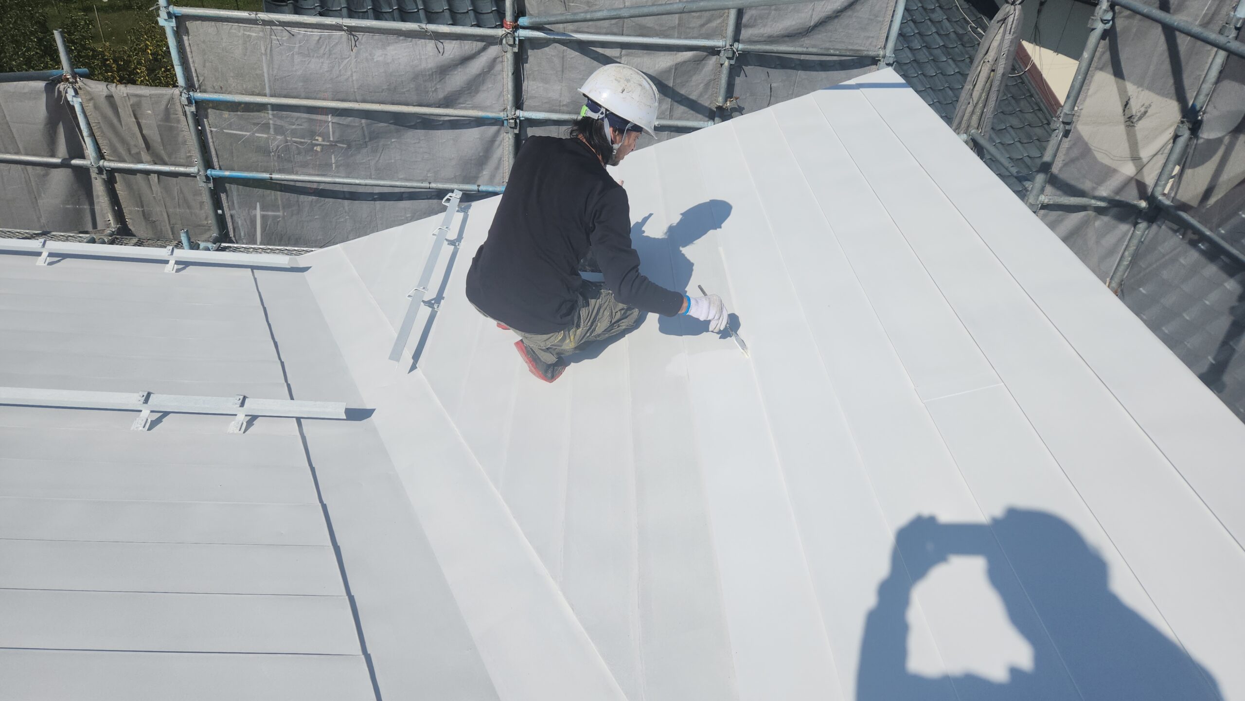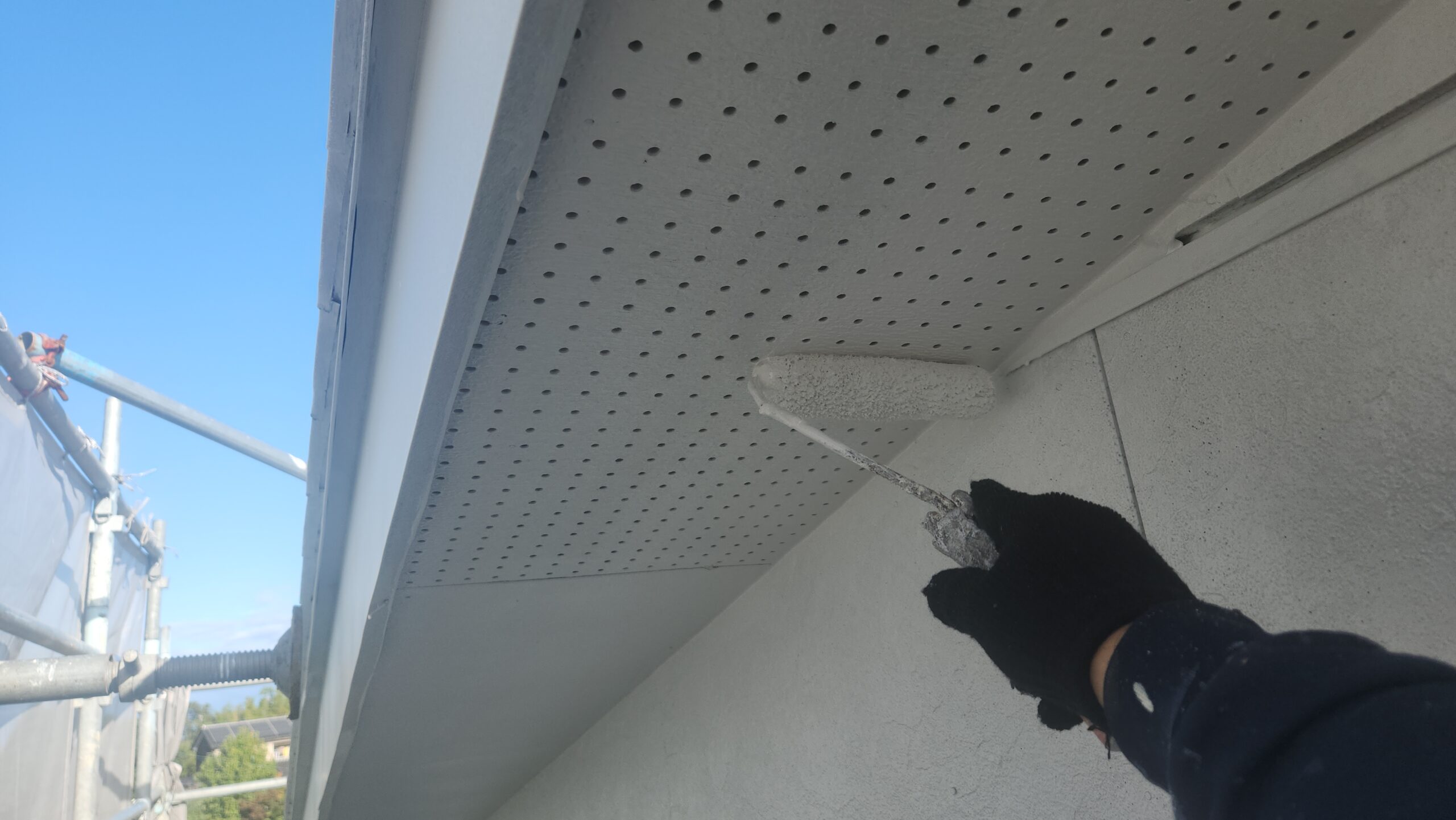 屋根、外壁、破風の中塗りをしました。