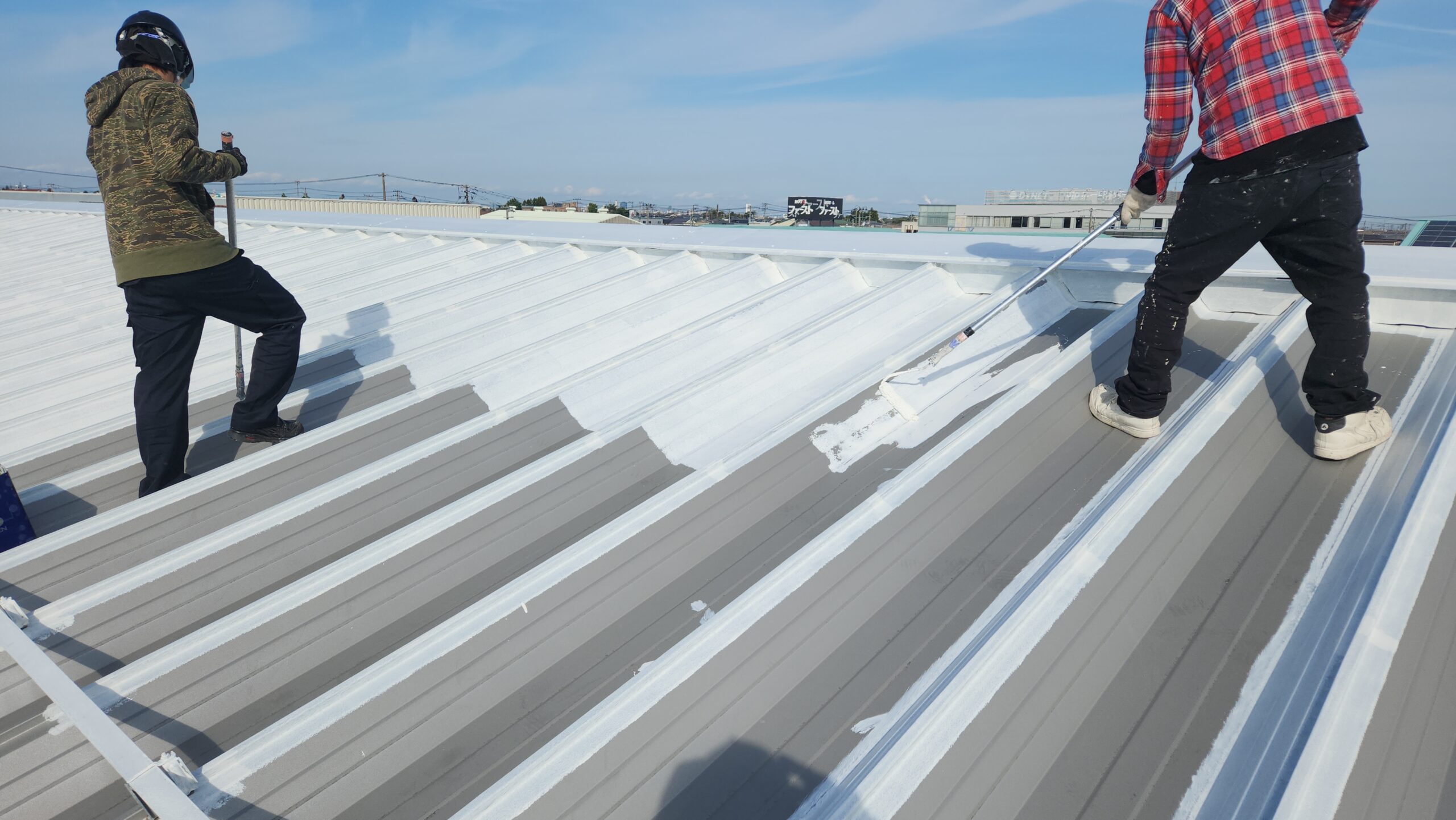 本日は屋根の下塗りと1部中塗り、上塗りをしました。