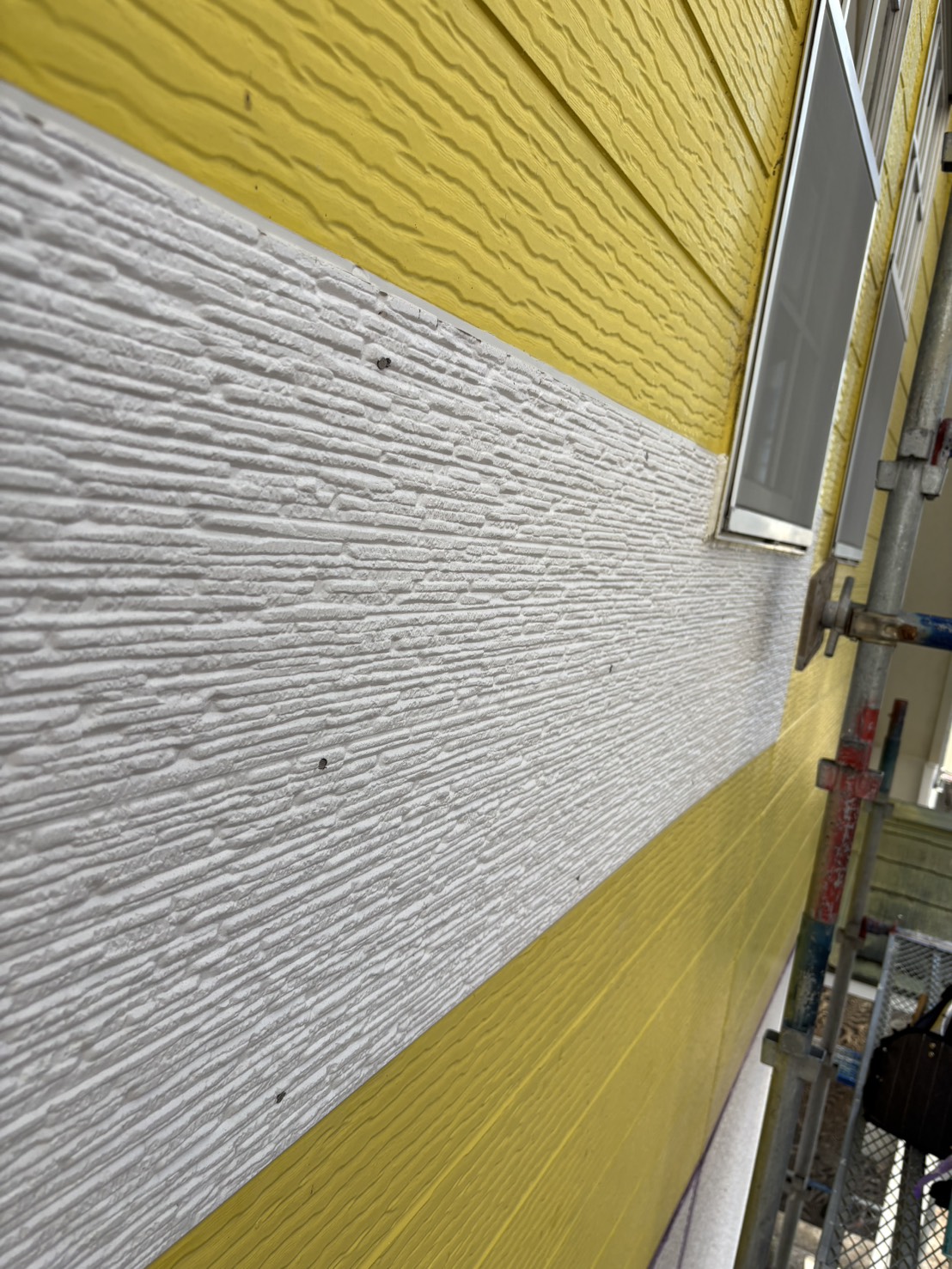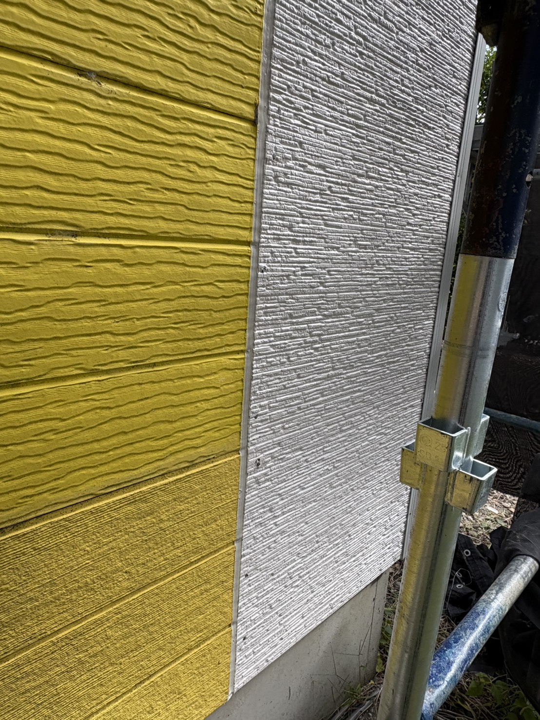 外壁部分張替、破風板金、シーリング工事も終わりまして、あとは外壁塗装となります。