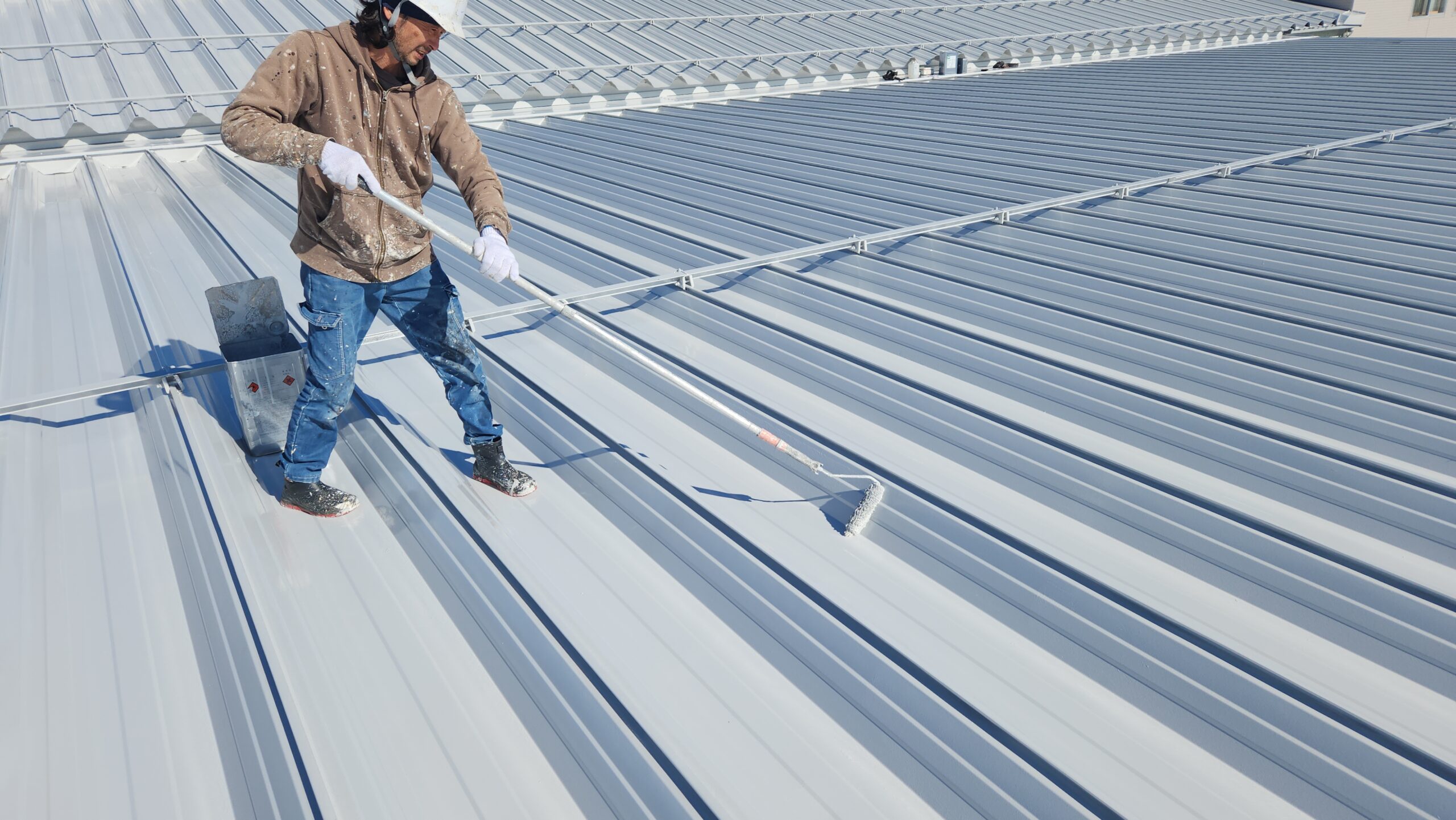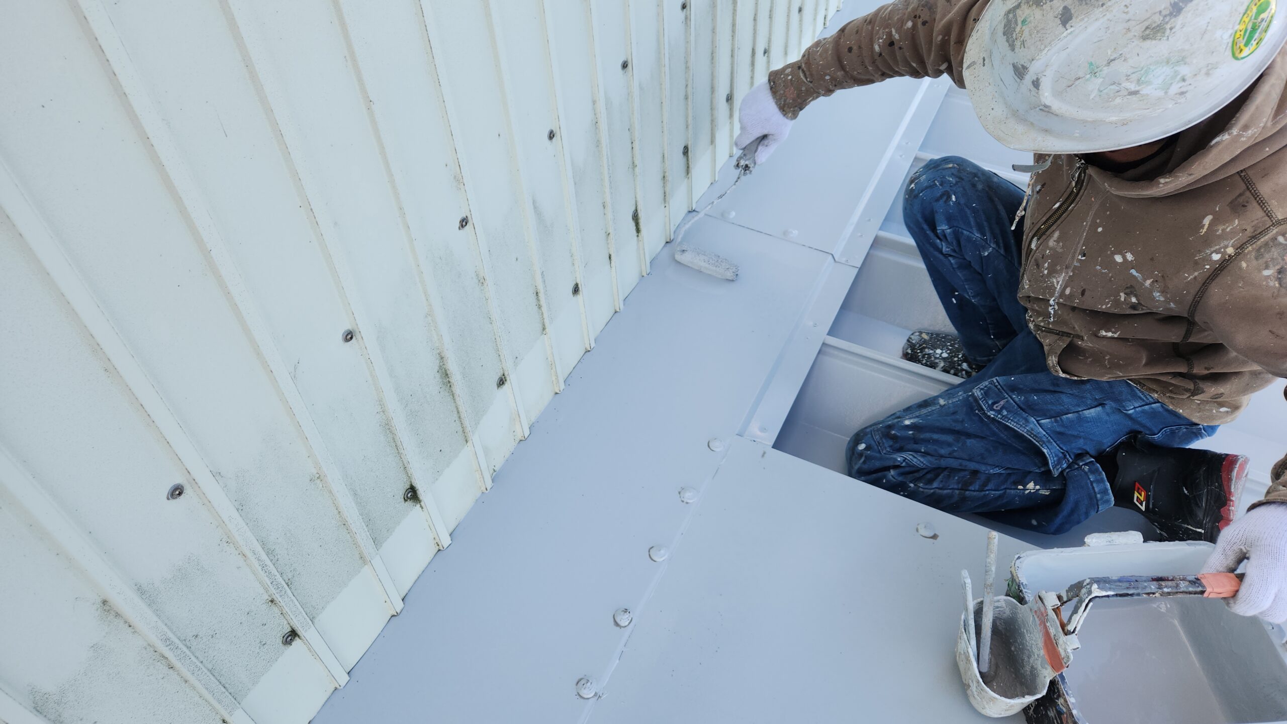 屋根、下屋の上塗りをしました。