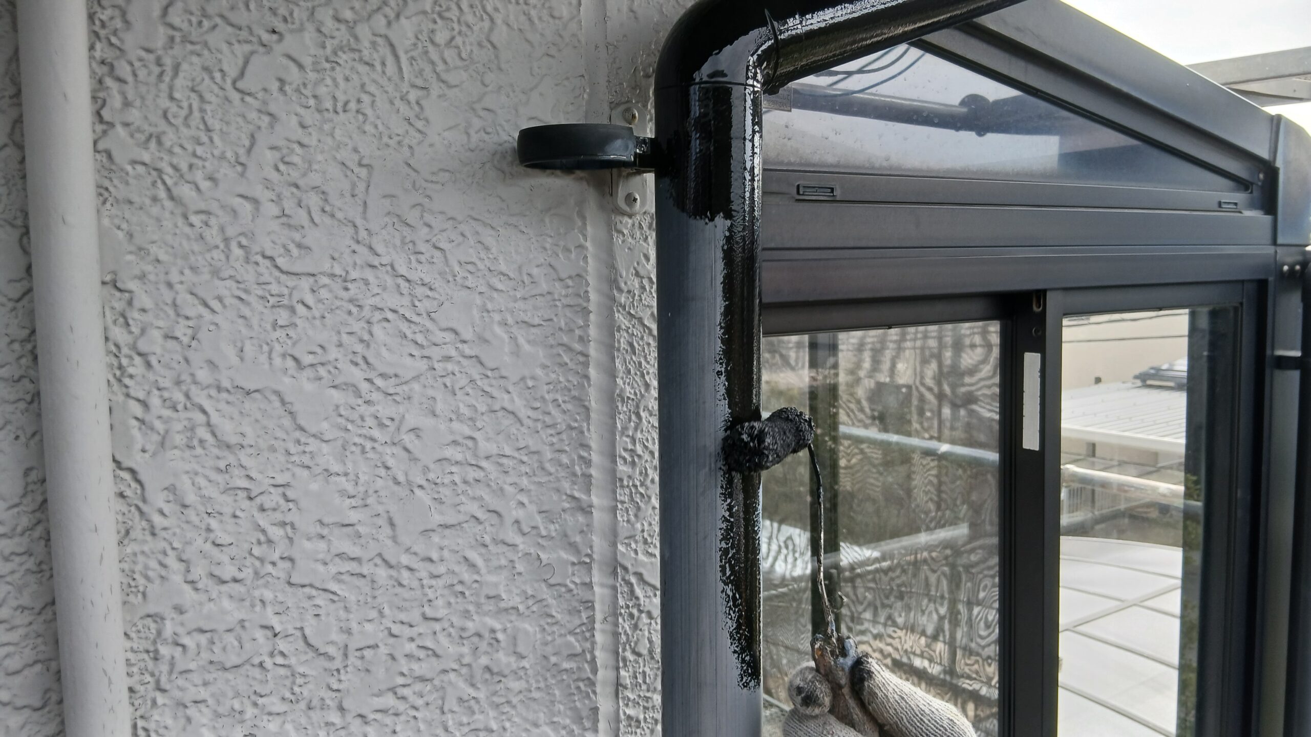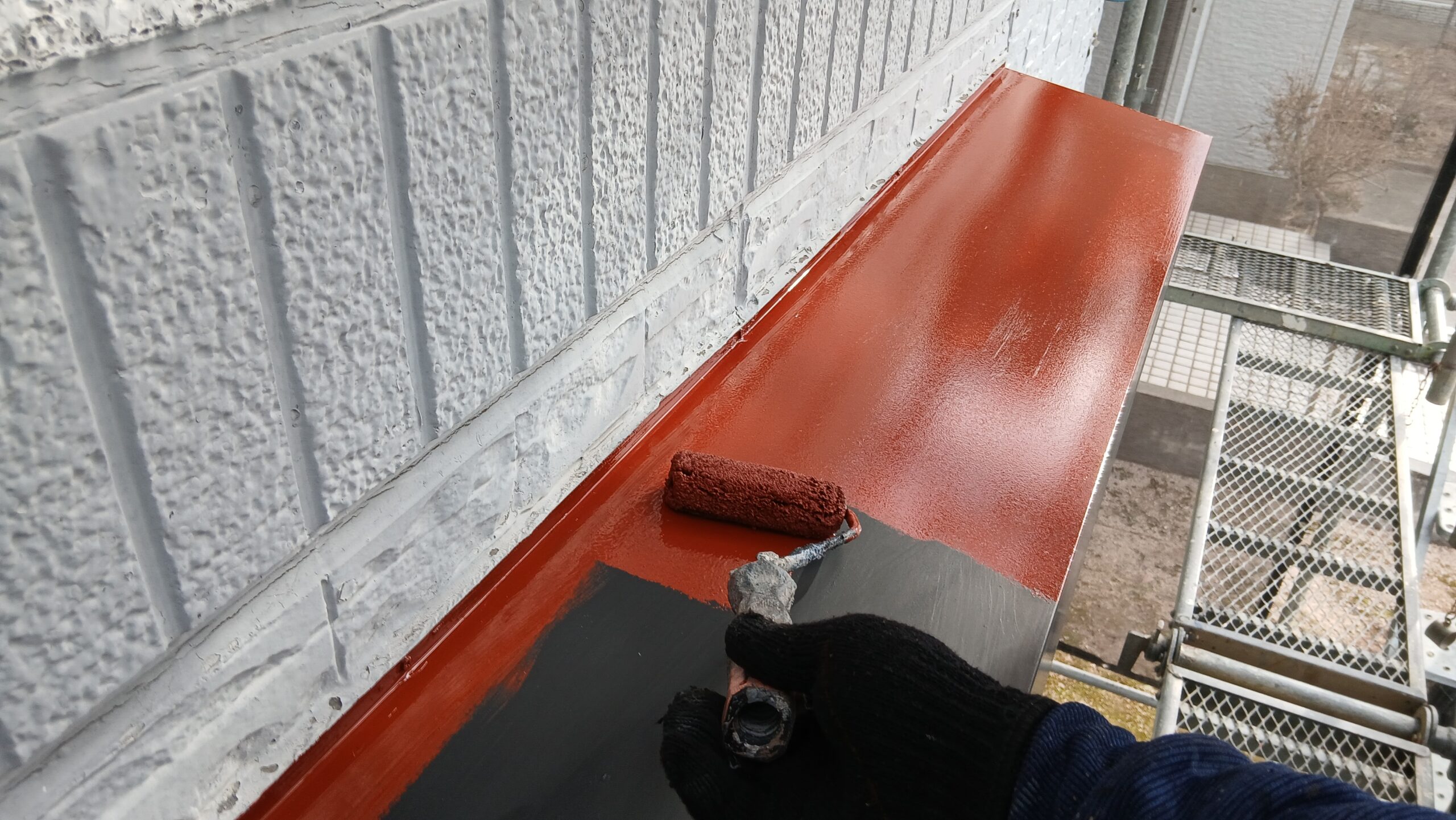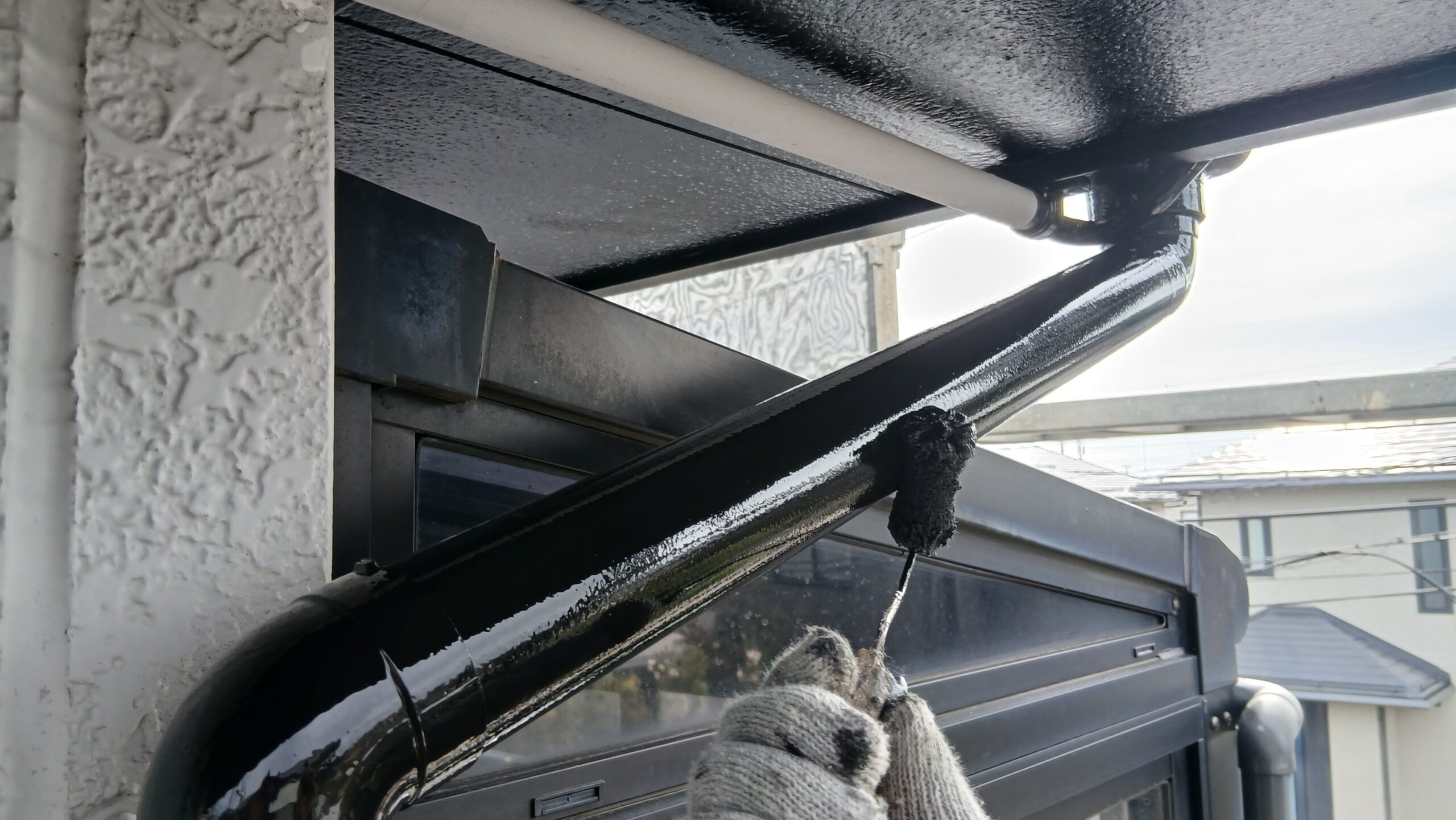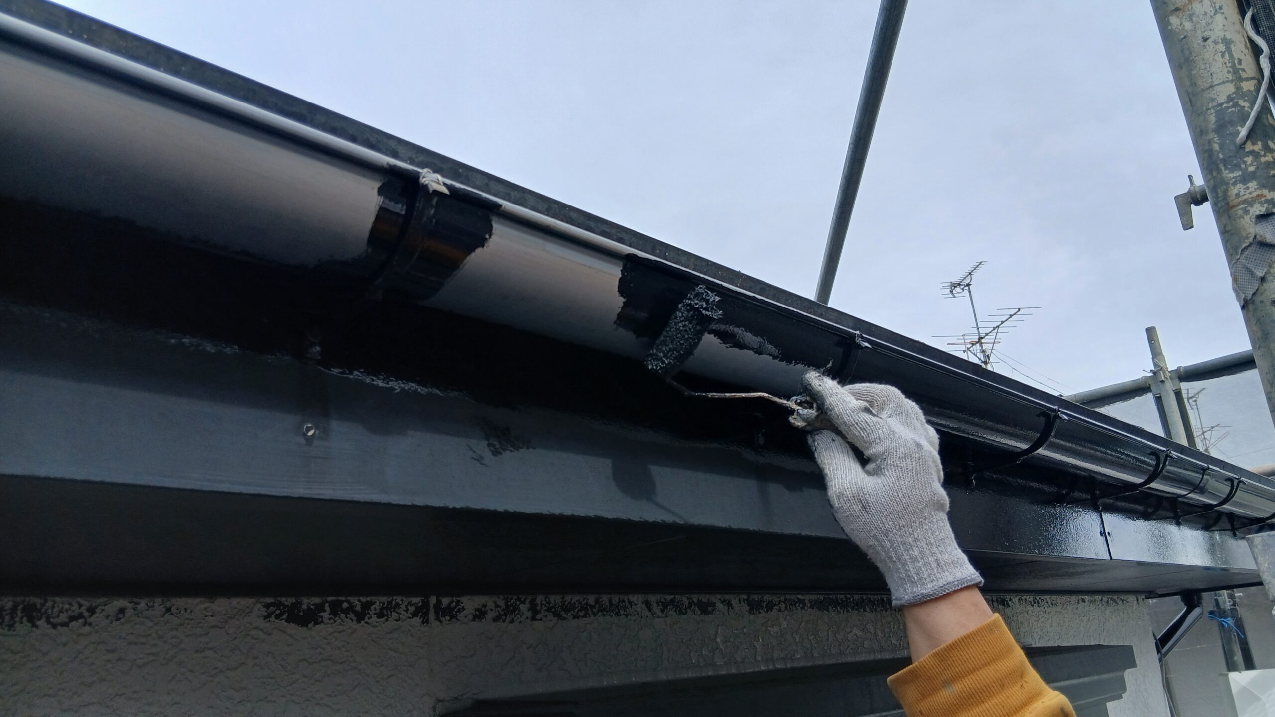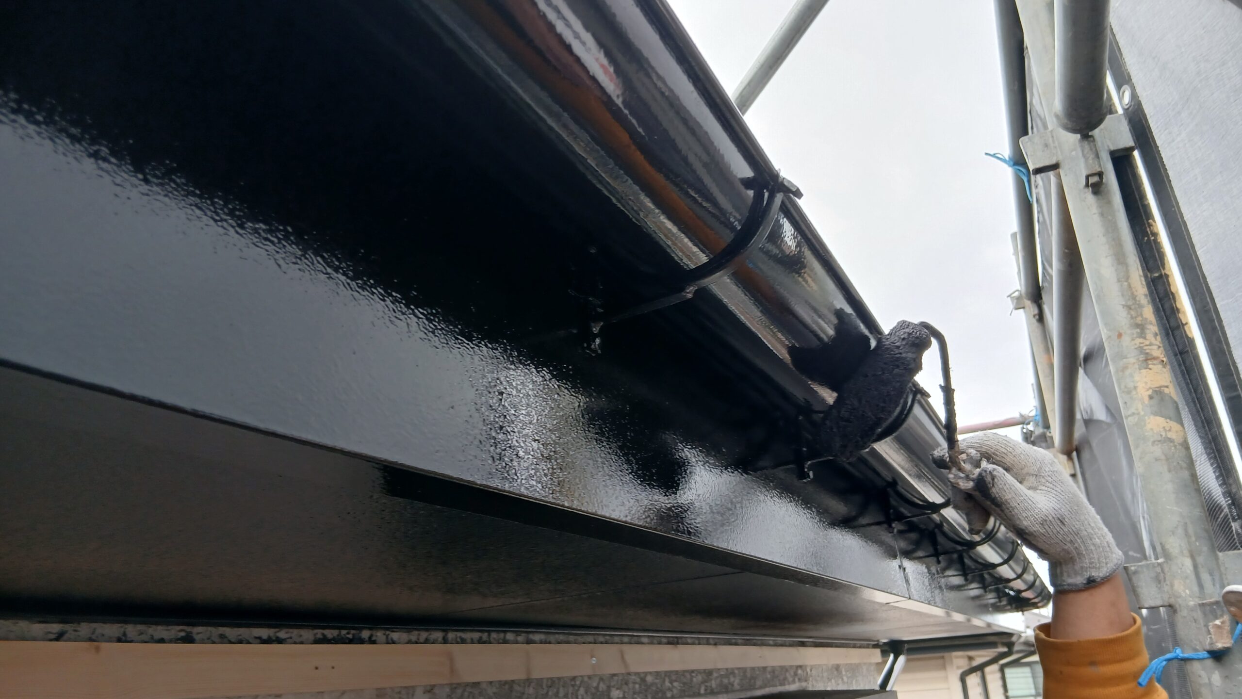 軒天、破風、雨樋、シャッターBOXの中塗り、上塗りをしました。