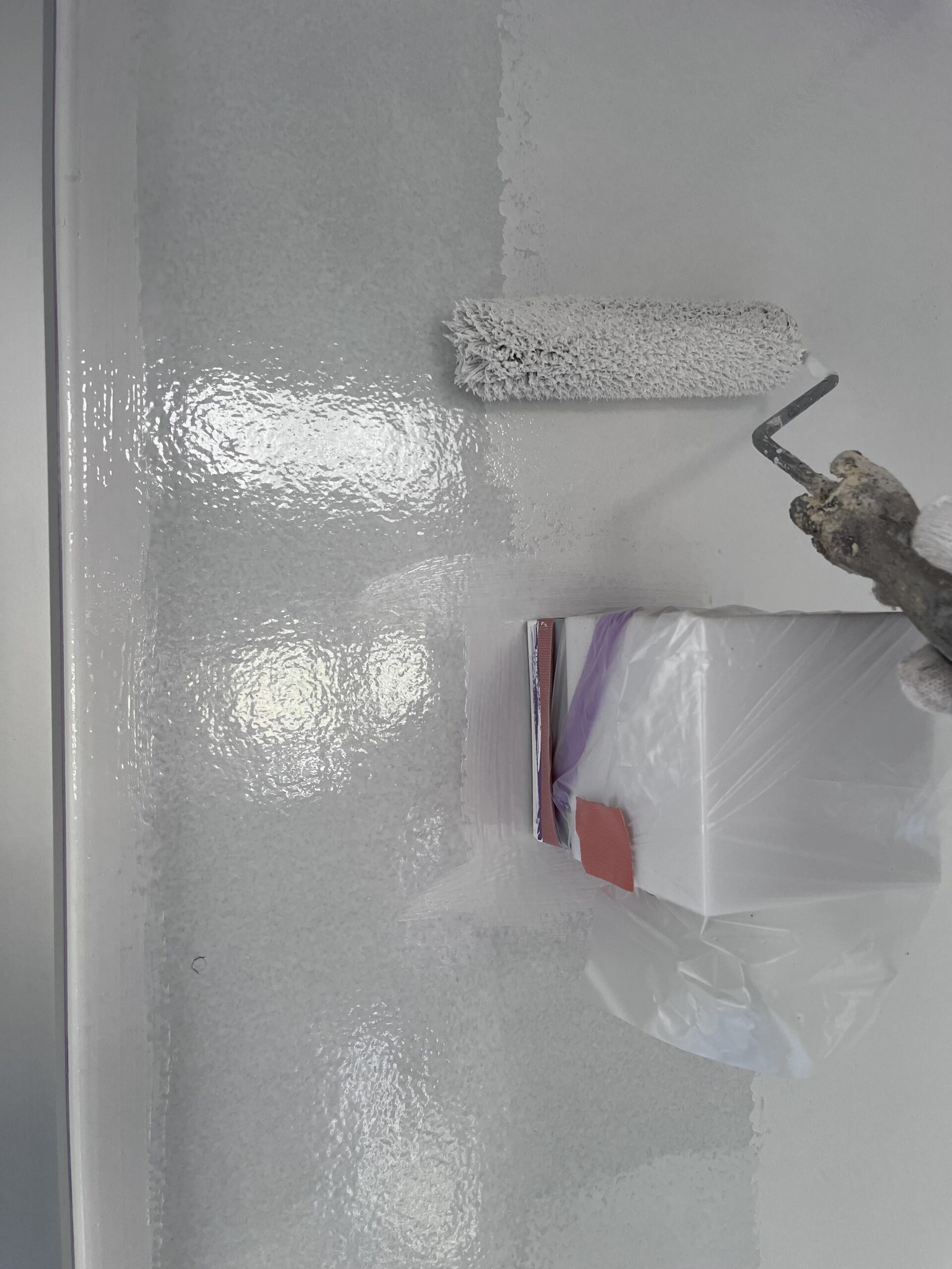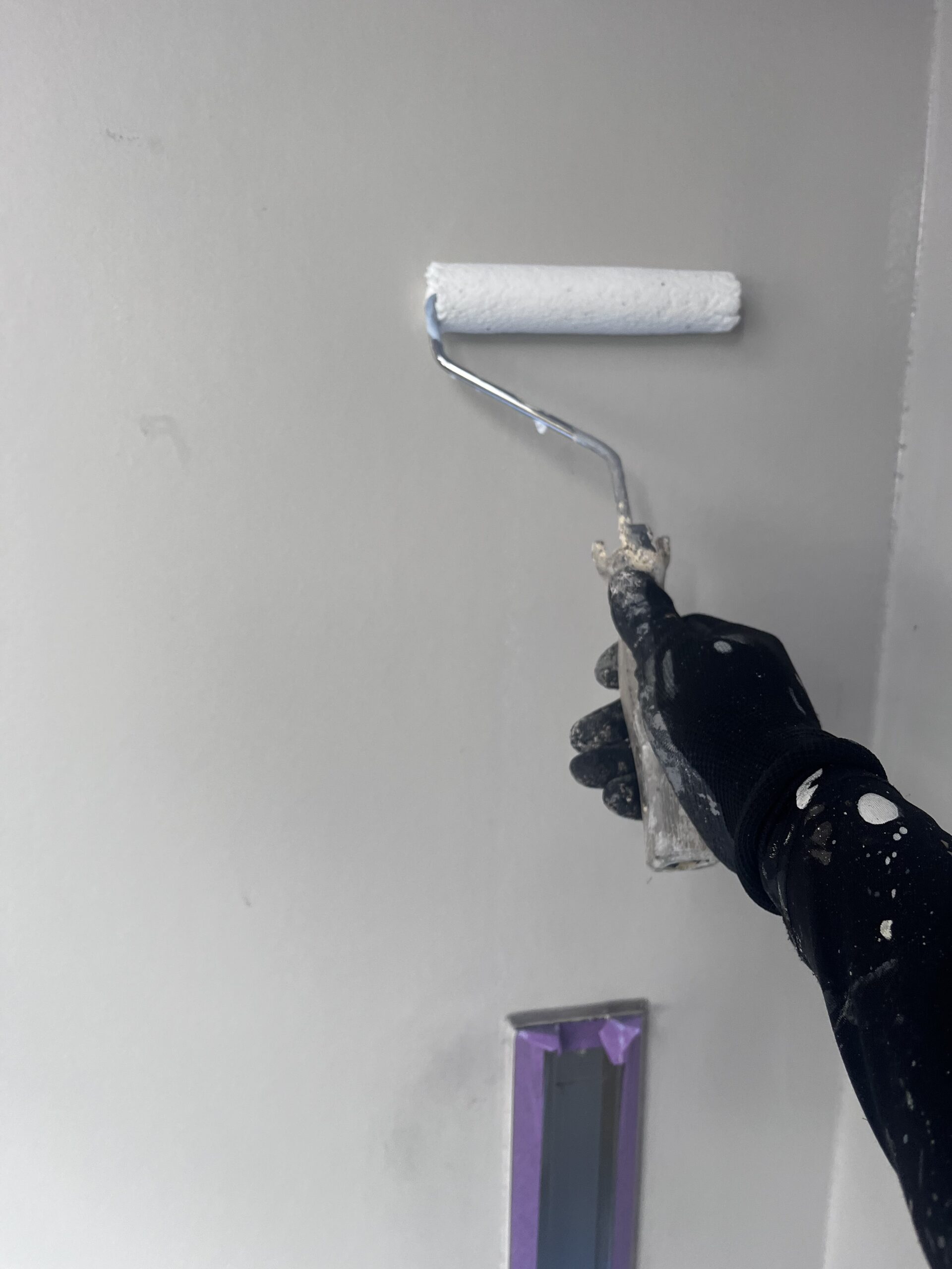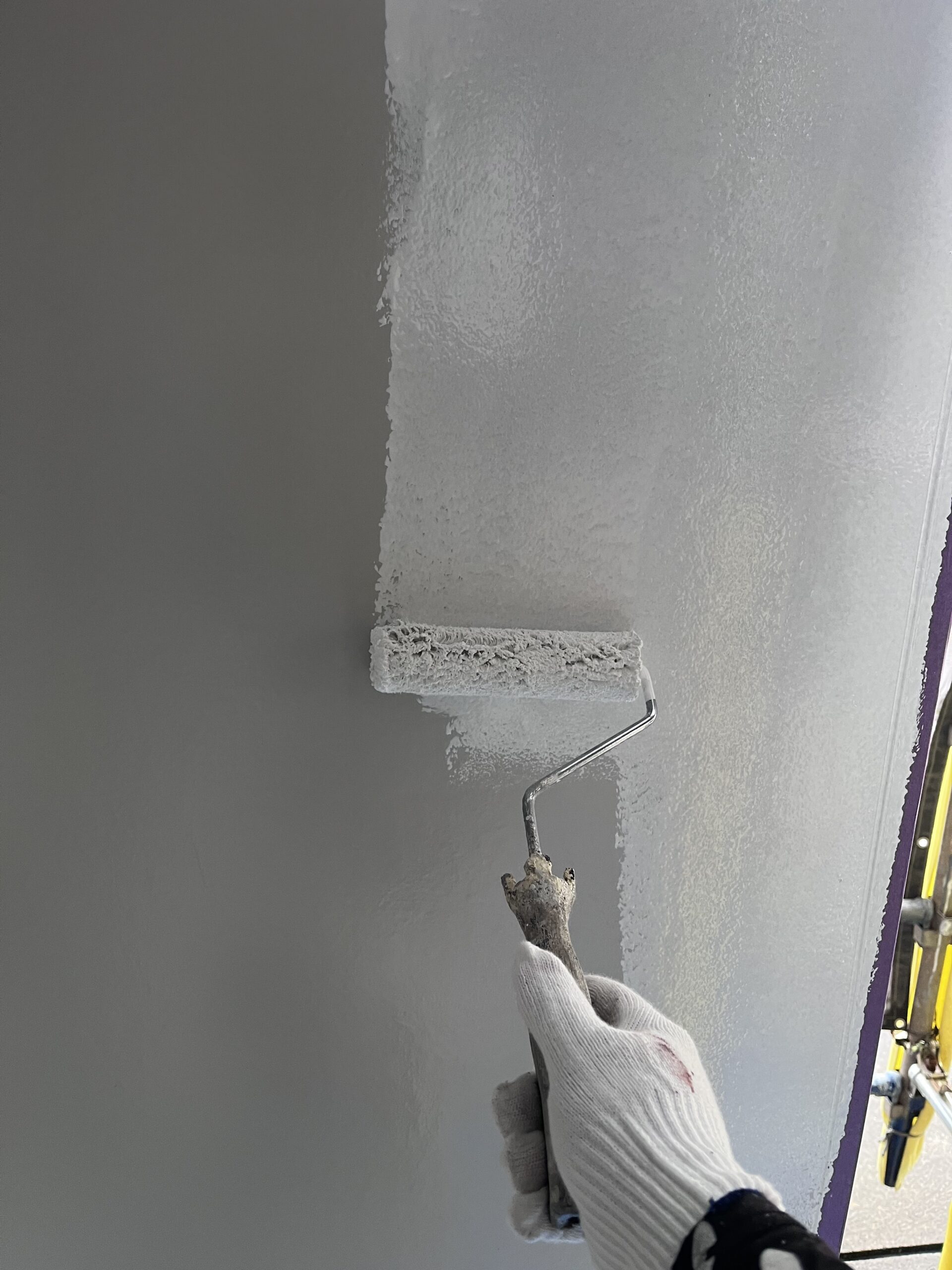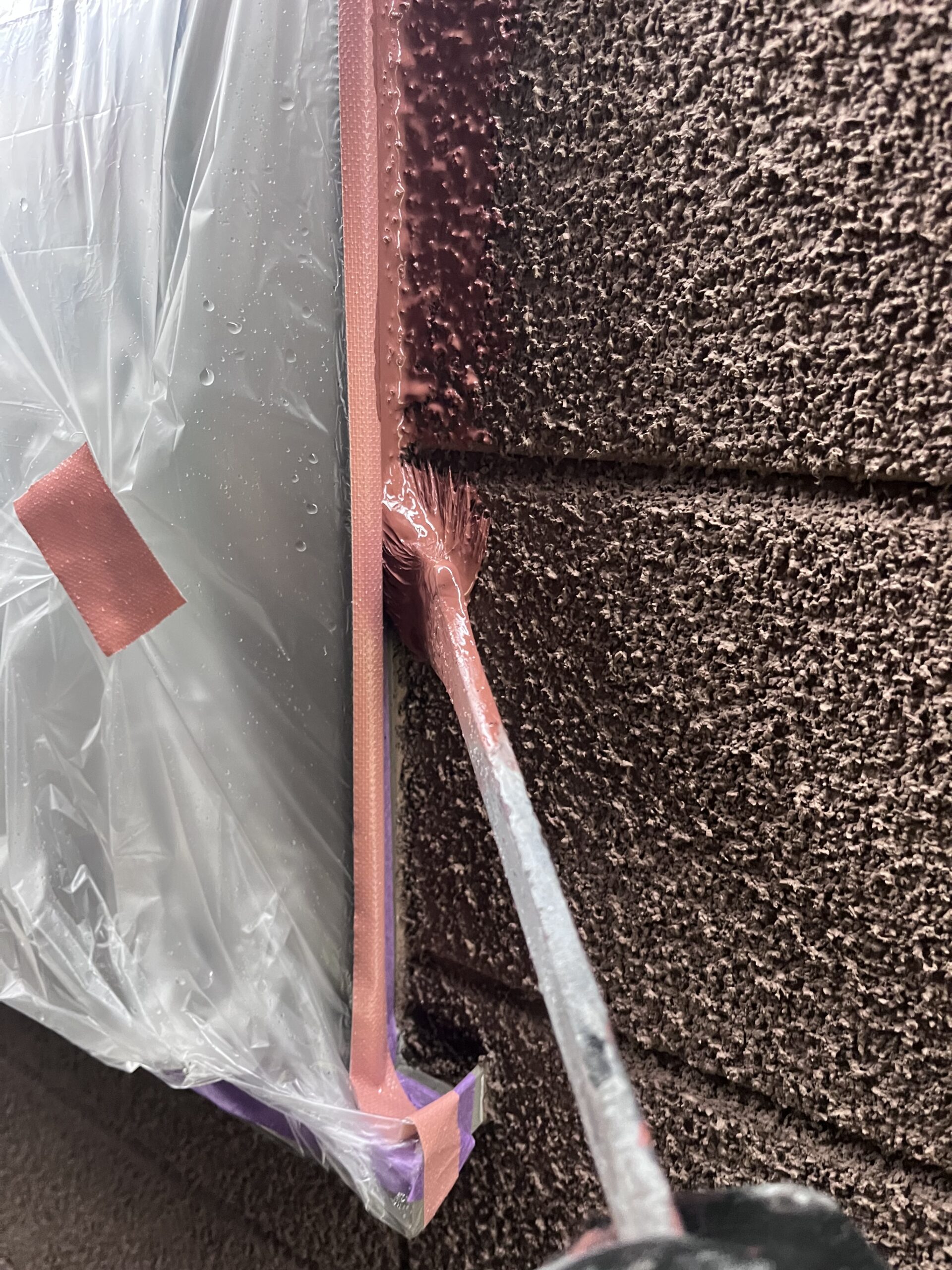 玄関ポーチ下塗り、中塗り上塗り、外壁だめこみ
