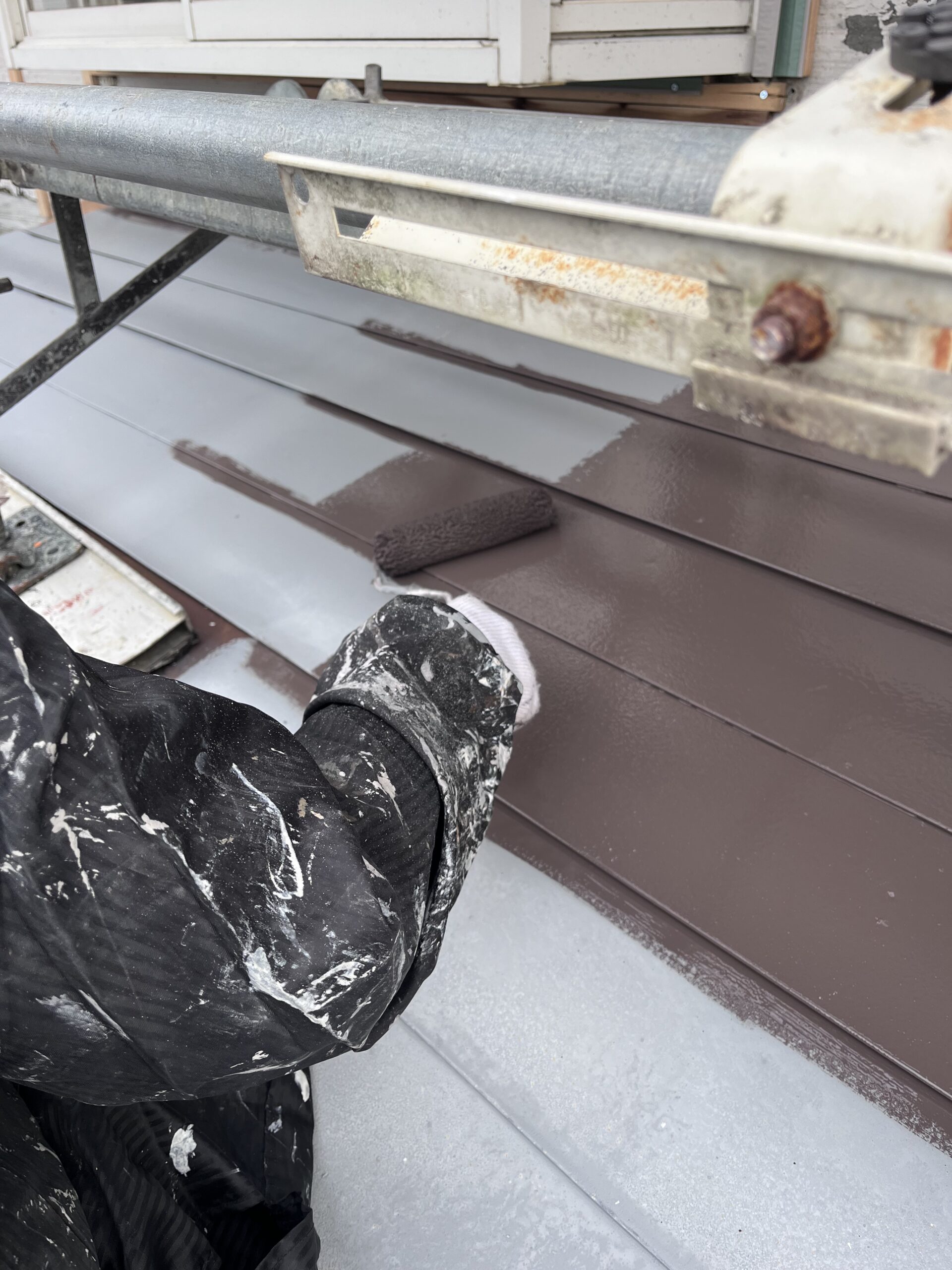 屋根中塗り、きりおけ中塗り、軒天中塗り